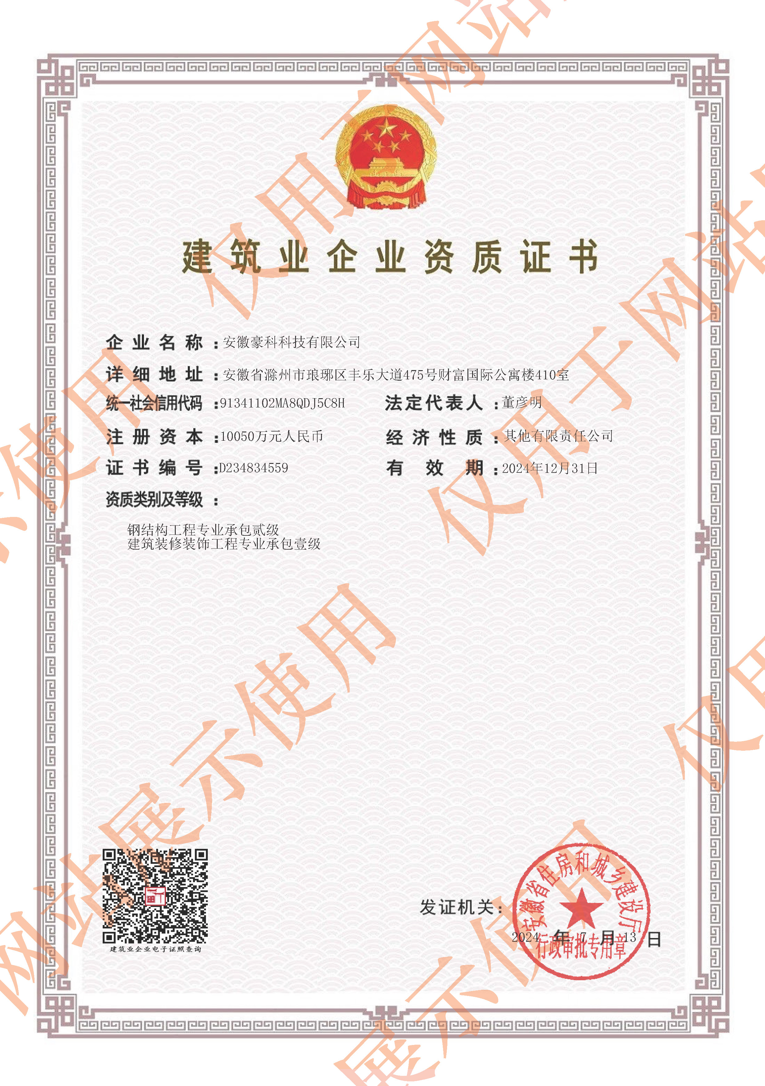 子公司:裝修裝飾壹級、鋼結構貳級資質